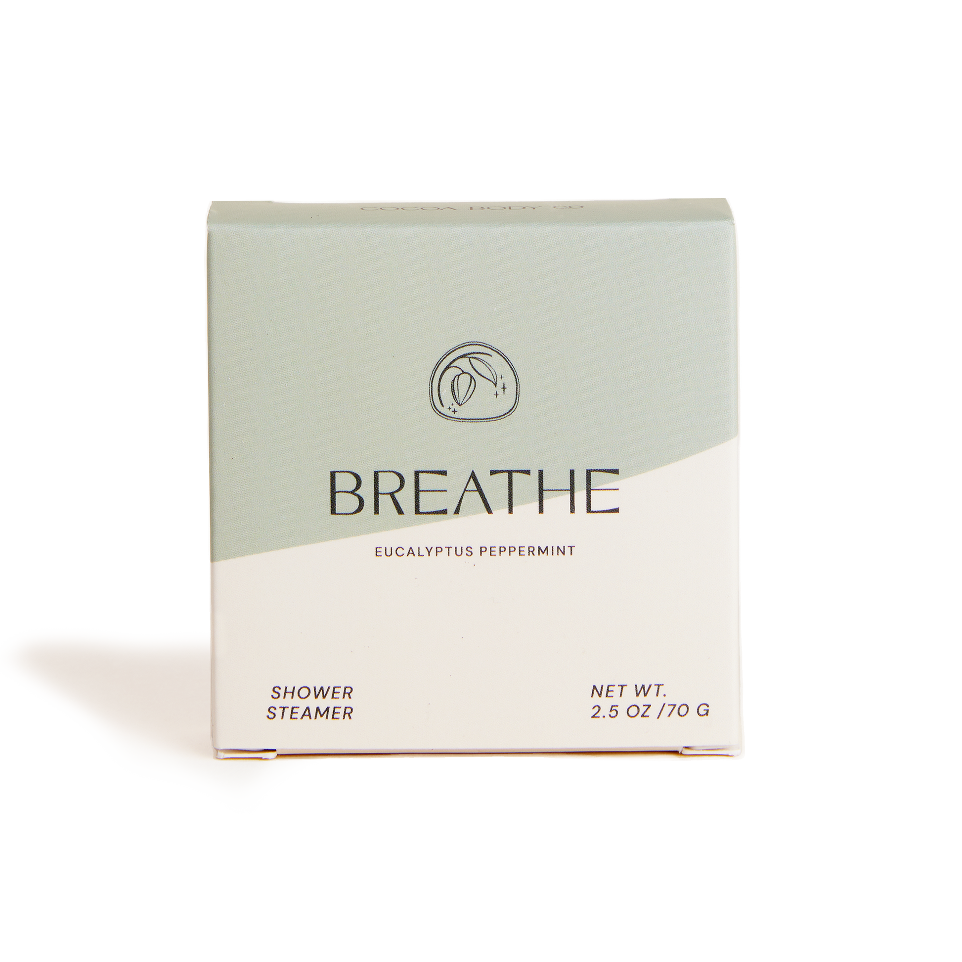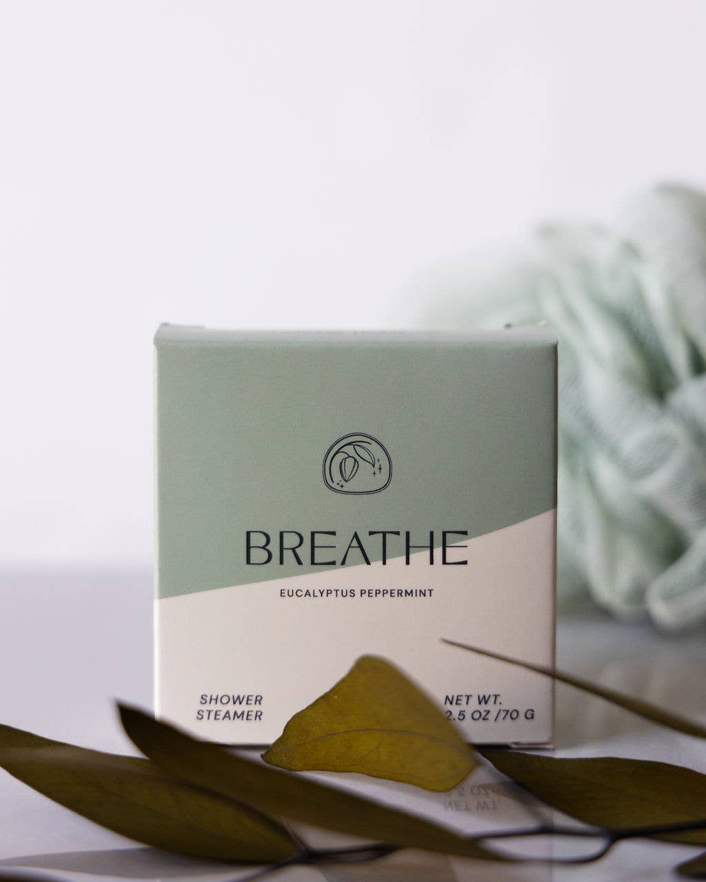 Let your shower be your refuge with our Breathe Shower Steamer that allows you to reset your body and experience the undeniable benefits of aromatic release. Inhale the relaxing blend of eucalyptus and peppermint and find peace while you cleanse your body and get ready for what’s ahead. It’s the perfect way to naturally calm your body from the inside out and let those feelings of fear and worry wash down the drain. Place steamer in the shower out of the direct stream of water. Apply a few drops of water to activate. Breathe deeply and enjoy. Warning: Due to the high concentration of essential oils this product is not safe for use on skin. Do not use in a bath. Keep away from moisture until you're ready to use. Ingredients: Sodium Bicarbonate, Citric Acid, Mentha arvensis (Peppermint) Oil, Eucalyptus Globulus Leaf Oil, Isopropyl Alcohol.