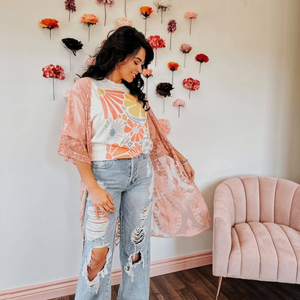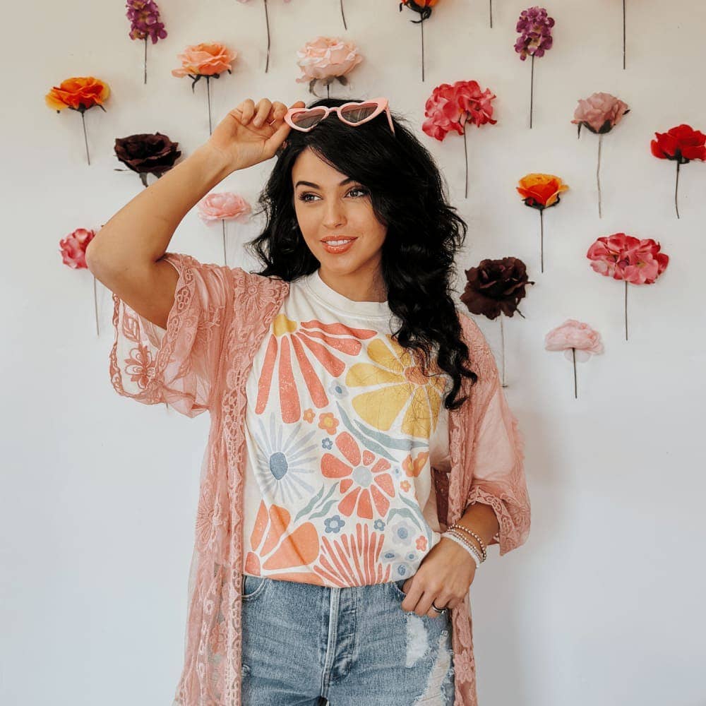 Welcome the new season with our Welcome Spring Graphic Tee! Featuring a retro design of colorful flowers, this casual tee is the perfect addition to your wardrobe. Embrace the spring vibes and add a pop of color to your outfit.
