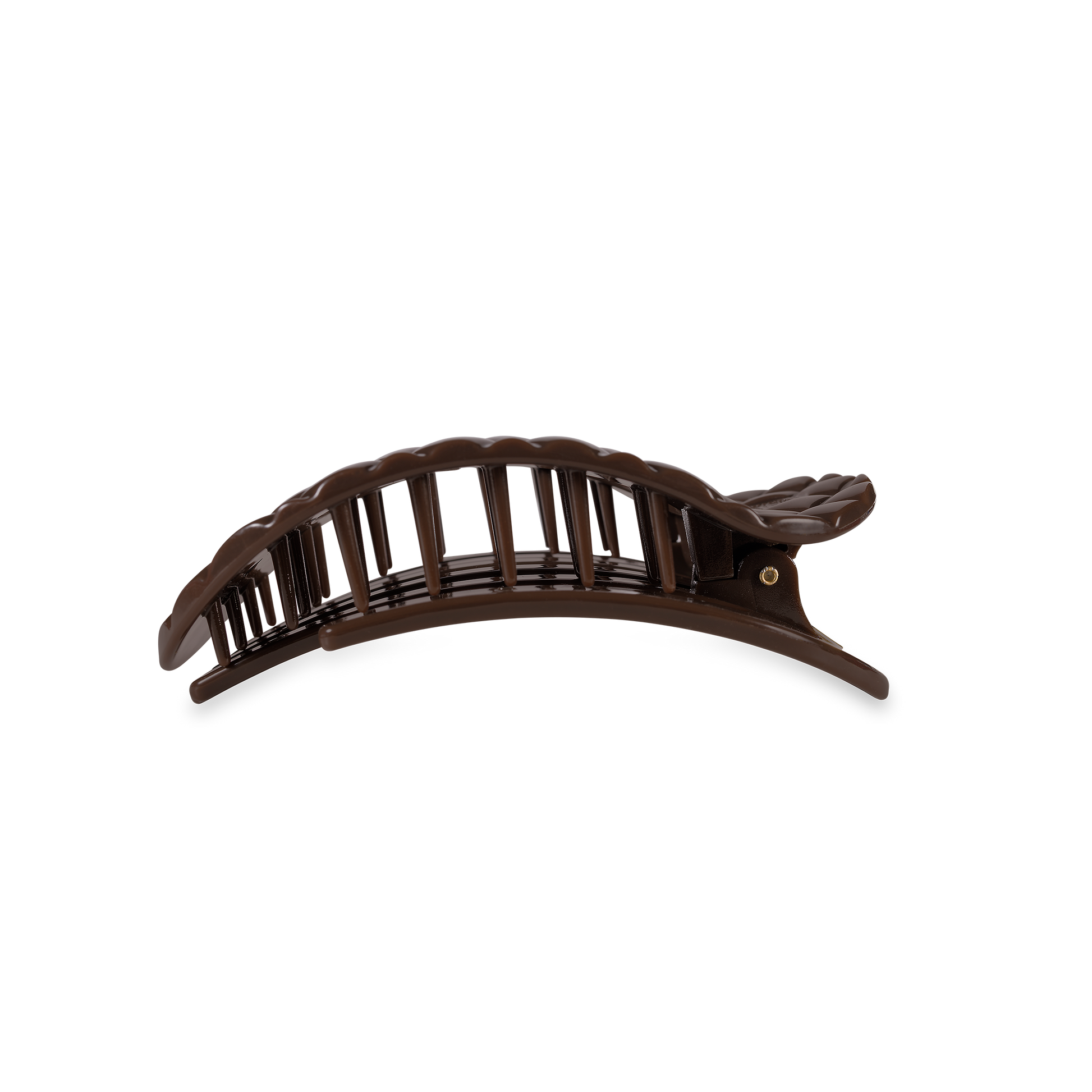 Lay flat and relax with the new TELETIES Truly Taupe Quilted Medium Flat Round Hair Clip in Taupe. This hair clip is designed to allow you to lay back flat, do yoga, or sit comfortably in a seat with a headrest, and it is made with the same material that is nearly unbreakable. Lay down flat with comfort Bendable teeth for a secure yet gentle hold Lightweight, durable, and suitable for all hair types Perfect for all-day wear—from sunup to sundown The medium size is 3.75 inches long.