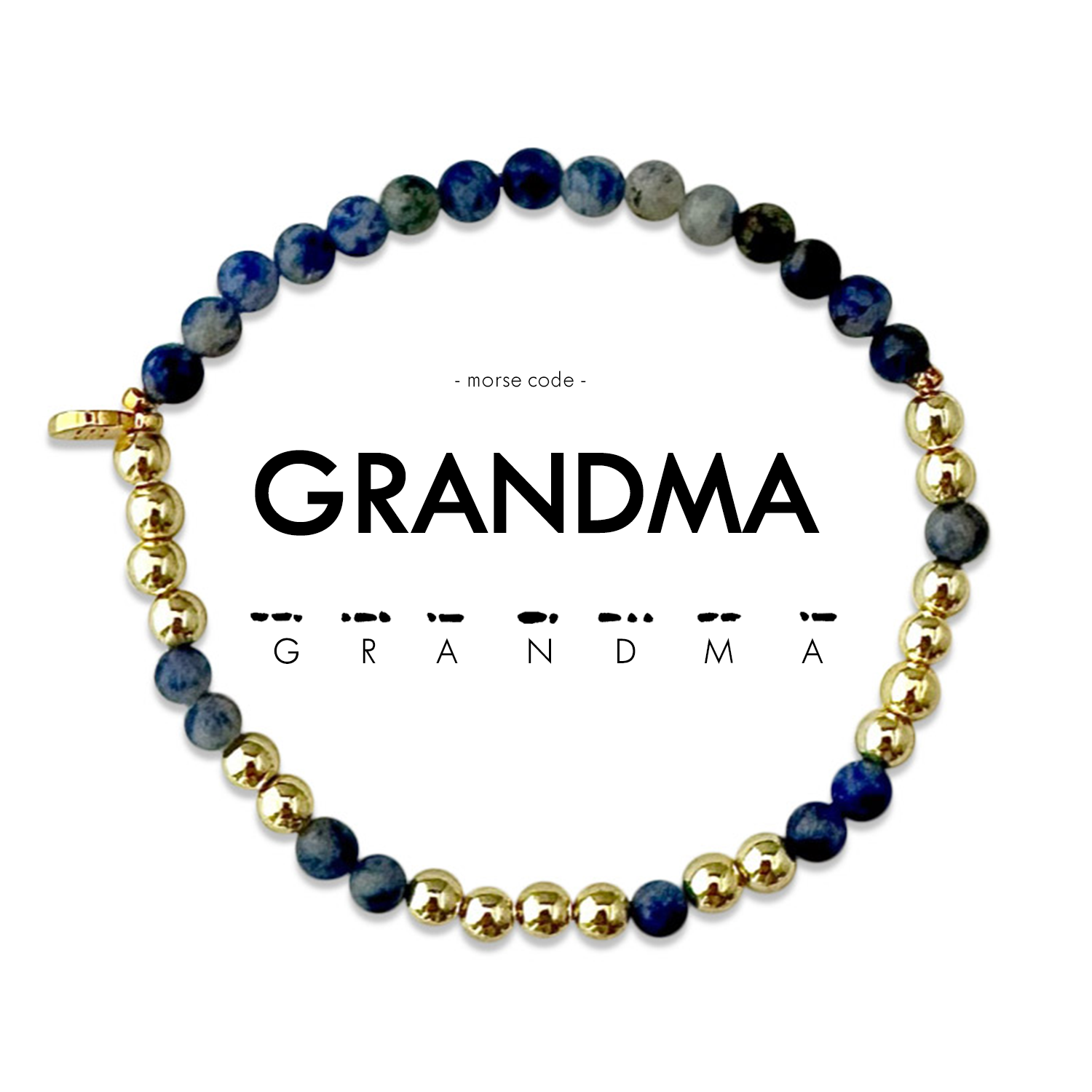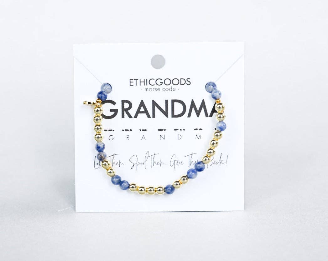 GRANDMA  Love them. Spoil them. Give them back. Give your Grandma a gift to let them know how much they mean to you! Let this bracelet remind them they are loved and hold the best title of all... GRANDMA!  This best selling Morse Code bracelet is now available in a classic gold color combination! The gold hematite beads are known to help keep you grounded and calm. This bracelet looks great alone or stacked with your other favorite Morse Code or stone stacking bracelets! How to read your jewelry: A Morse Code dot is one bead and a dash is two beads in the alternating color. Start at the small gold spacer bead and follow the Morse Code spelling around the bracelet!
