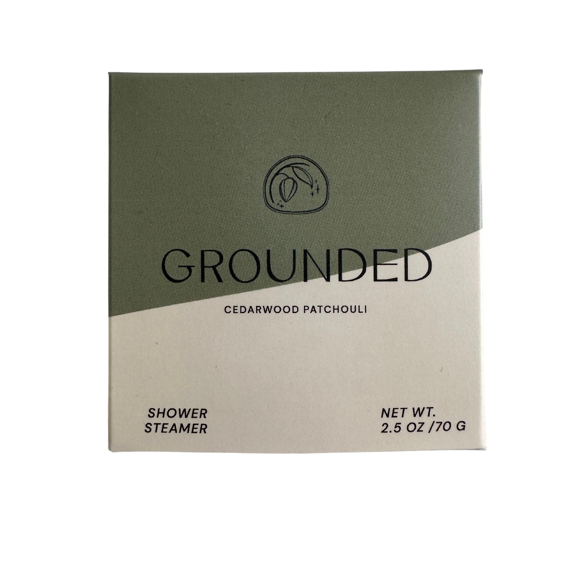 Let your shower be your refuge with our Grounded Shower Steamer that allows you to reset your body and experience the undeniable benefits of aromatic release. Inhale the relaxing blend of eucalyptus and peppermint and find peace while you cleanse your body and get ready for what’s ahead. It’s the perfect way to naturally calm your body from the inside out and let those feelings of fear and worry wash down the drain. Place steamer in the shower out of the direct stream of water. Apply a few drops of water to activate. Breathe deeply and enjoy. Warning: Due to the high concentration of essential oils this product is not safe for use on skin. Do not use in a bath. Keep away from moisture until you're ready to use. Ingredients: Sodium Bicarbonate, Citric Acid, Cedarwood, Patchouli, Bergamot, Rosemary Essential oil blend, Isopropyl Alcohol.
