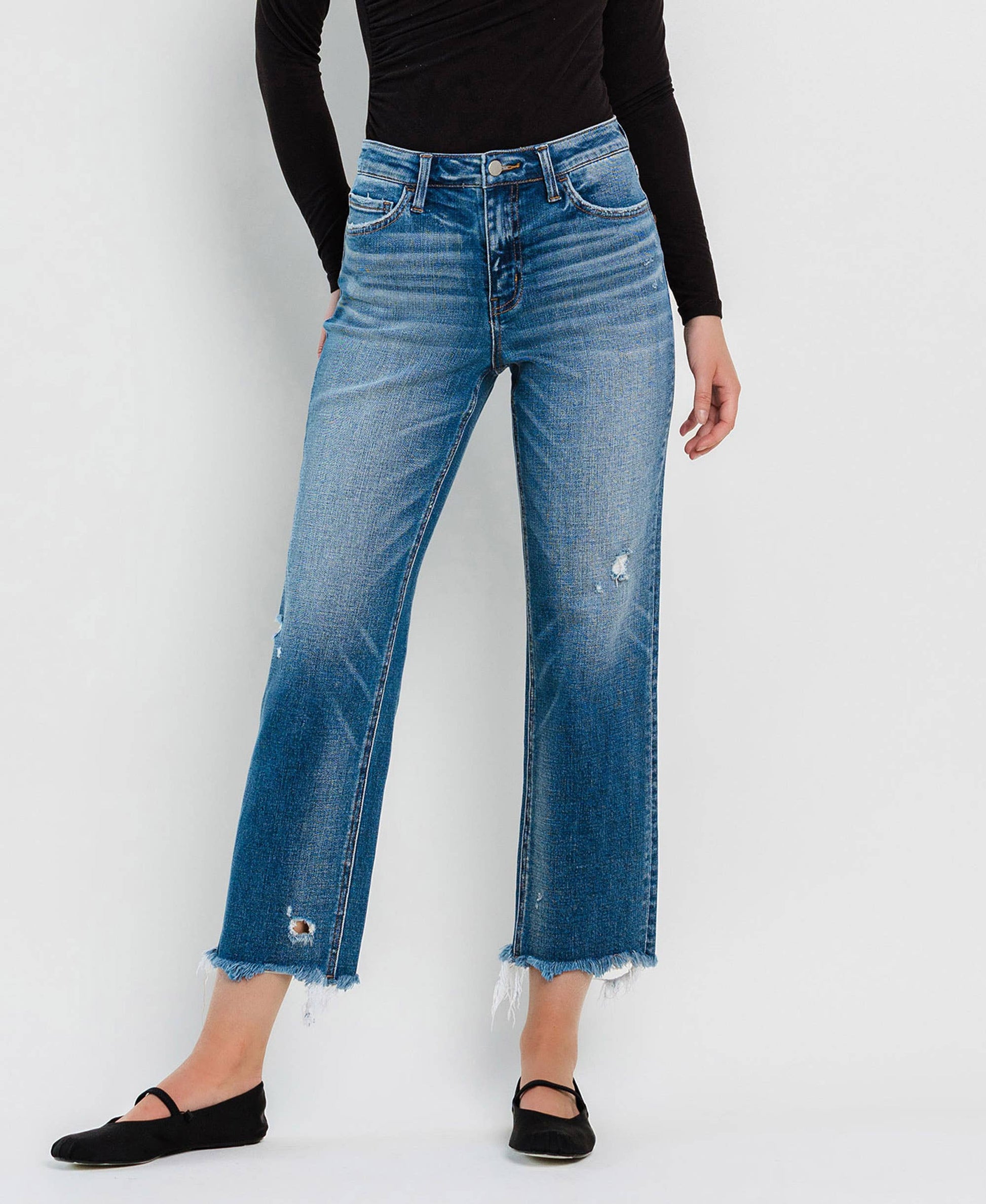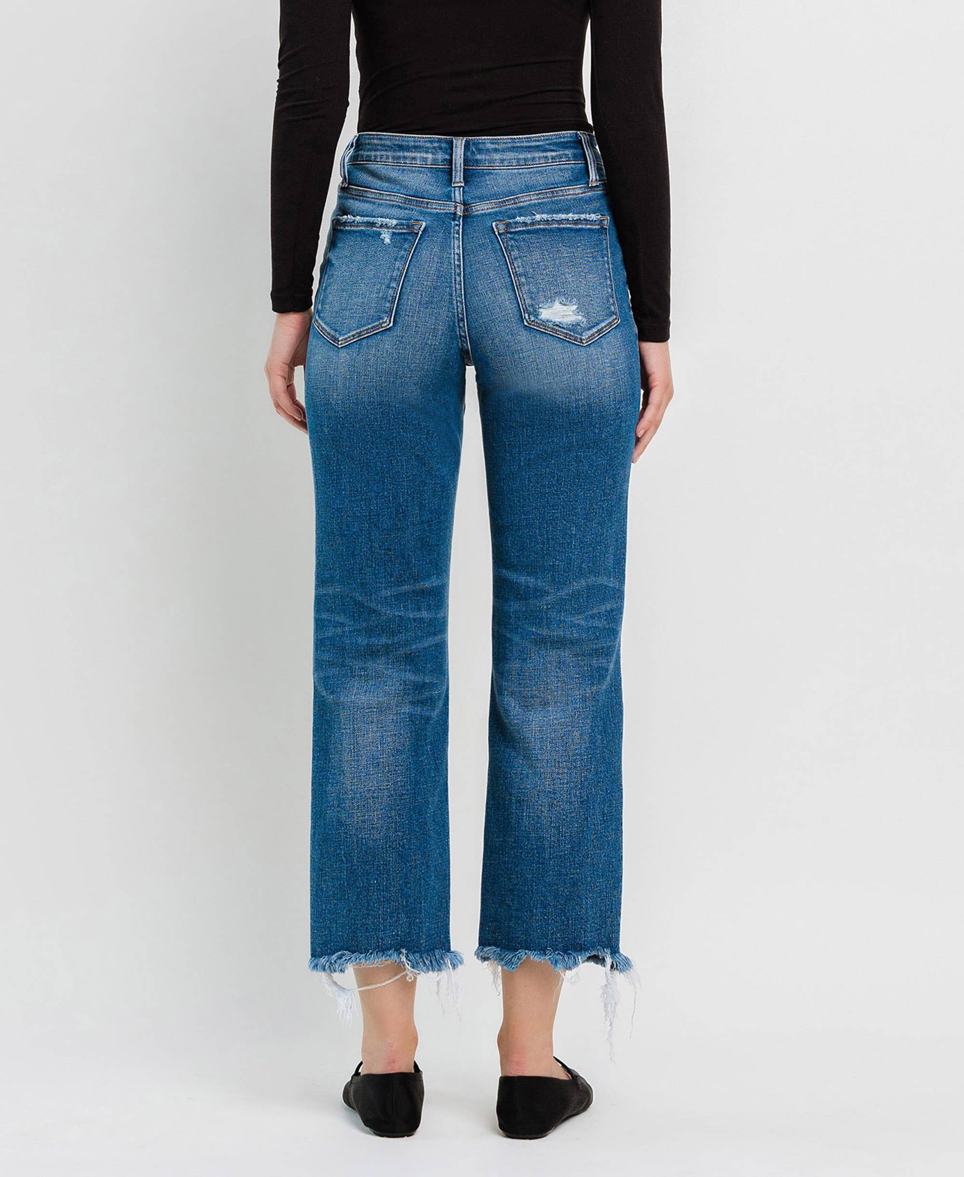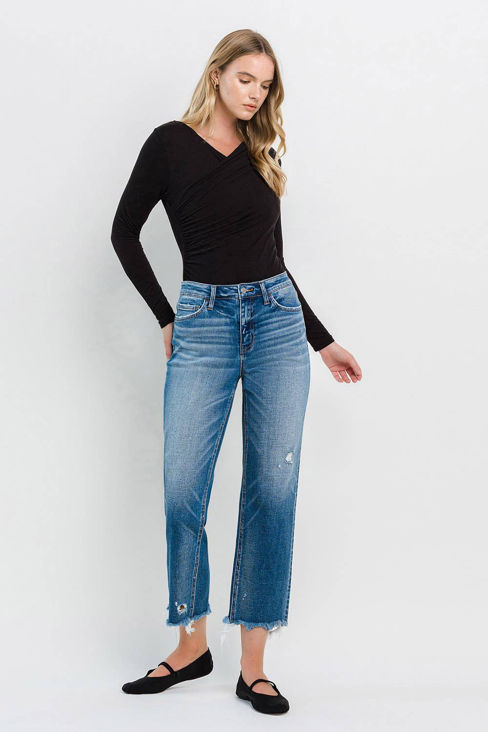 Put a little playfulness into your wardrobe with our High Rise Crop Straight Jeans. Their slight distressing gives them an edgy flair, while the raw hem adds a touch of uniqueness. Their flattering fit will make them your go-to for any casual day out. Dare to be different with these jeans!