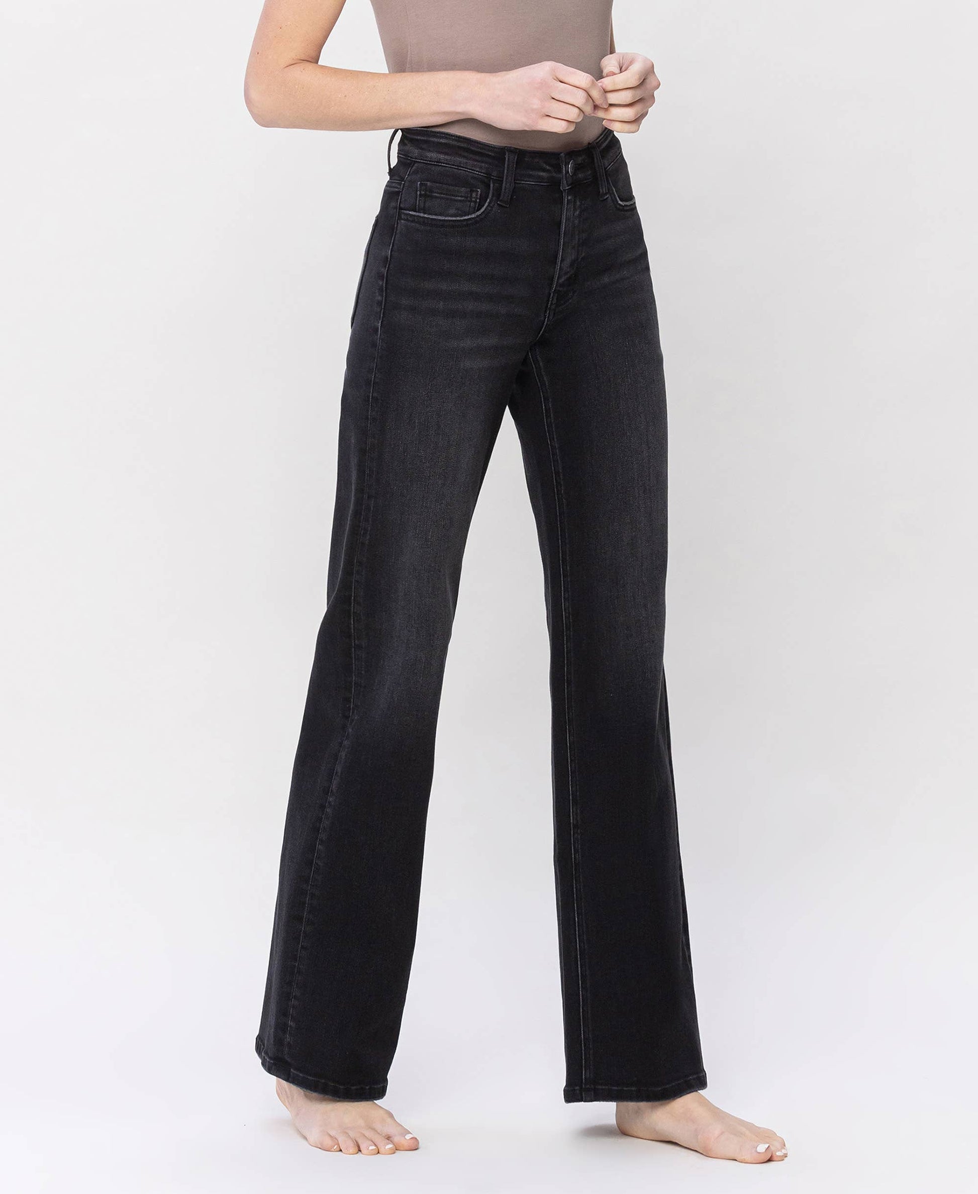 RISE: 10" / INSEAM: 33" / LEG OPENING: 20" MODEL IS 5'9" WEARING SIZE 26