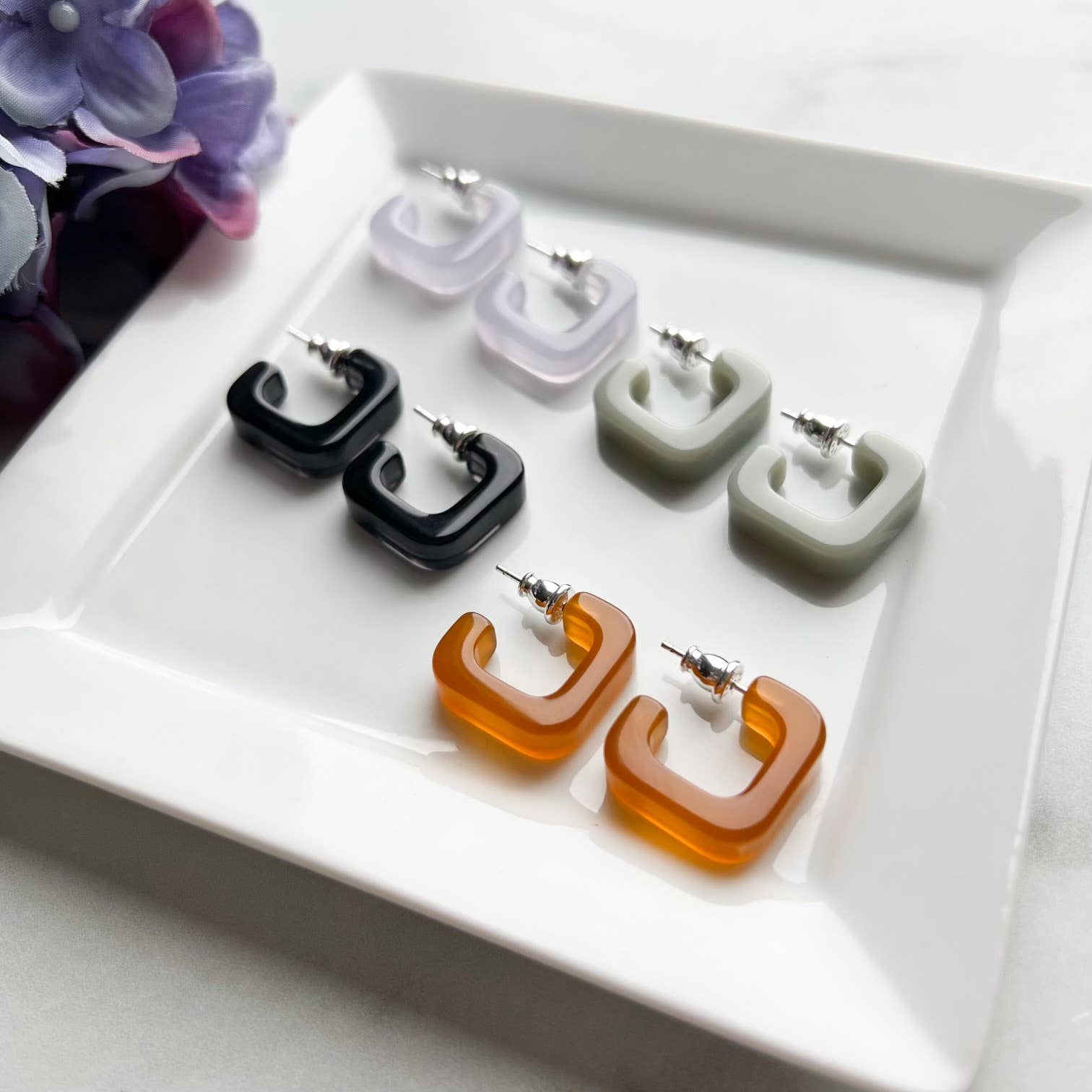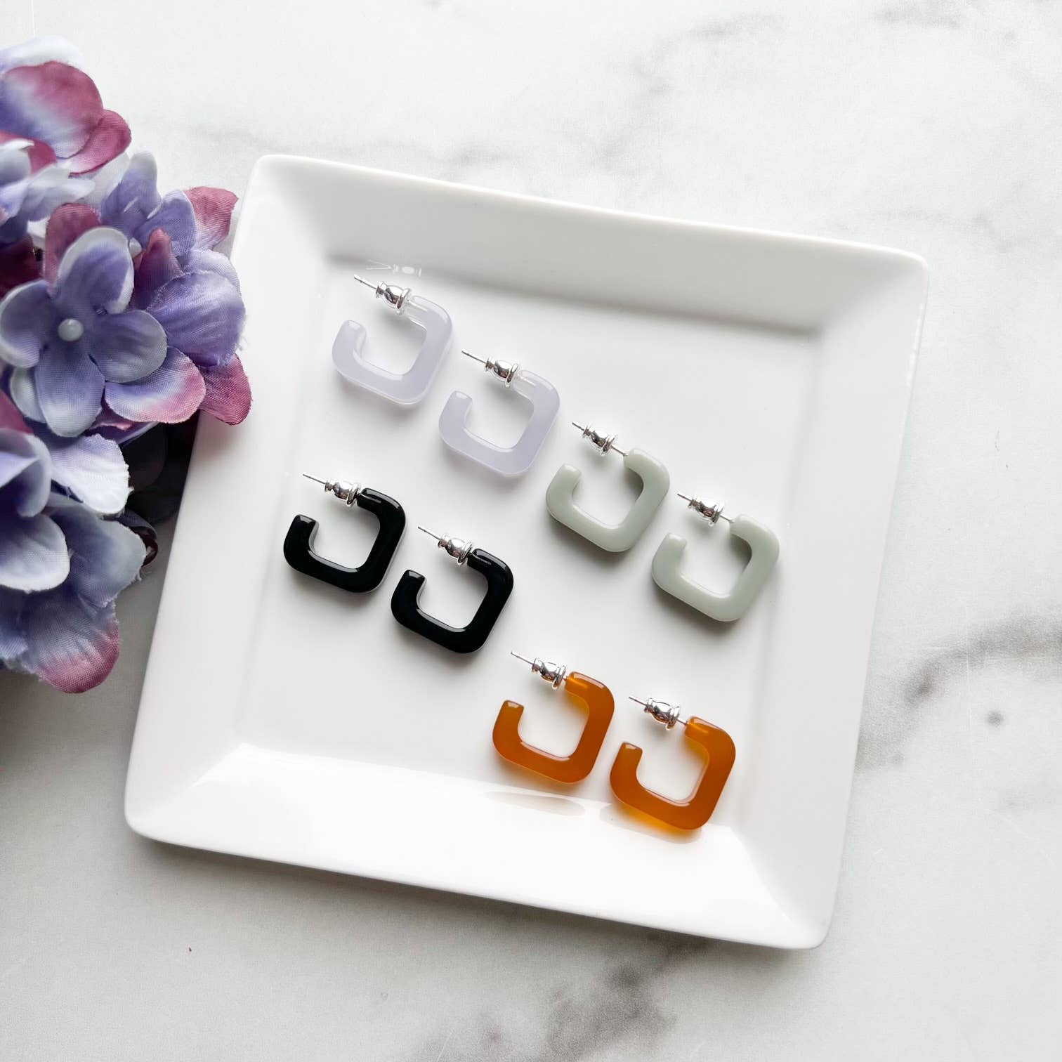 size 1inch/2.4cm 925 silver posts All of our pieces are made from cellulose acetate. A mixture of cotton pulp and acetic acid. It is a biodegradable and eco-friendly material. Acetate is lightweight yet durable. Our acetate is sourced from Italy and Japan and then manufactured and finished in both China and Idaho. We are a small, Woman-Owned business located in Boise.