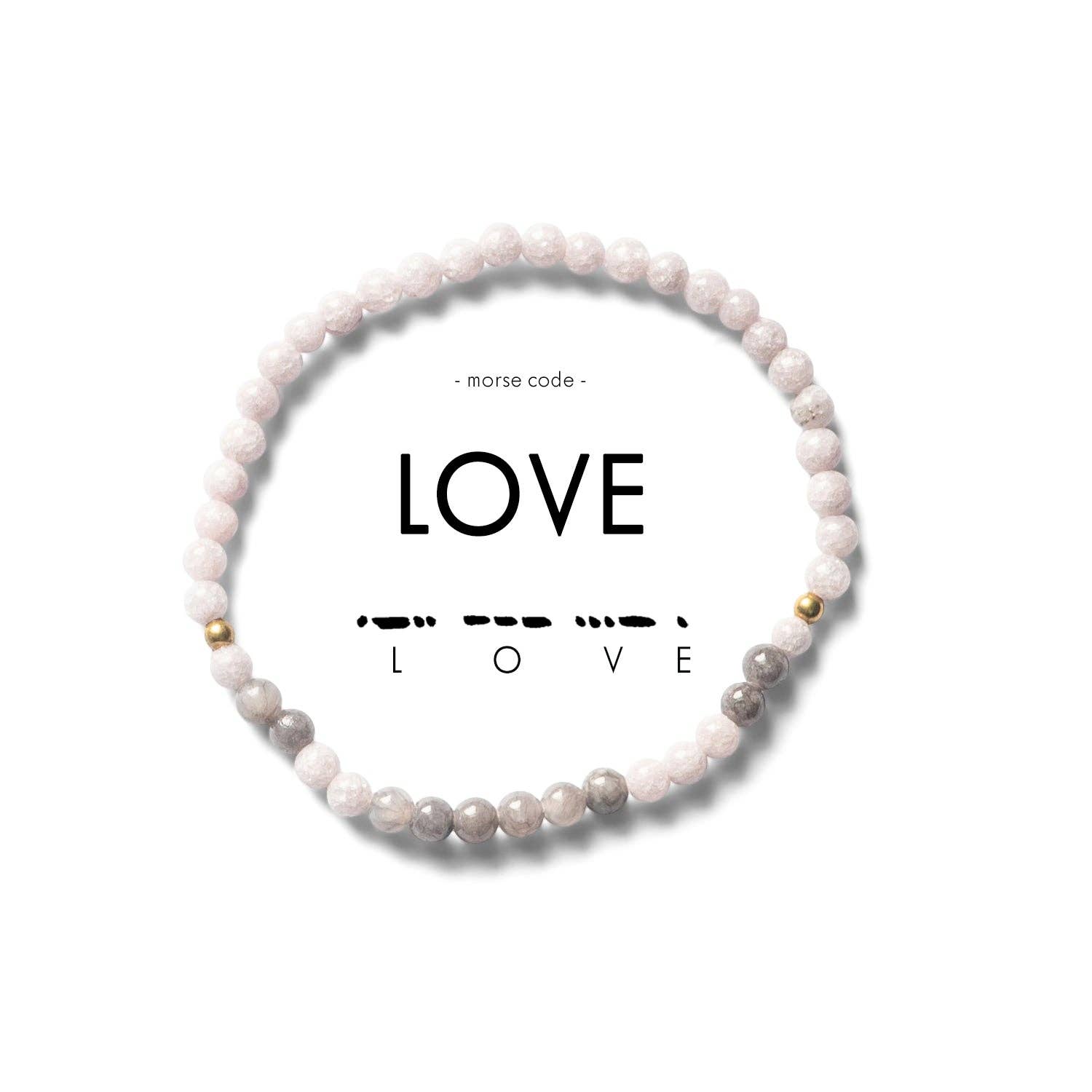 LOVE. Choosing someone's highest good.  Details * Length - 7.75" | Stretches to 8.5" * Handmade in Thailand * Made with semi-precious stones, glass beads, elastic, and love.  * Decode it: a dot is one bead, a dash is two beads!