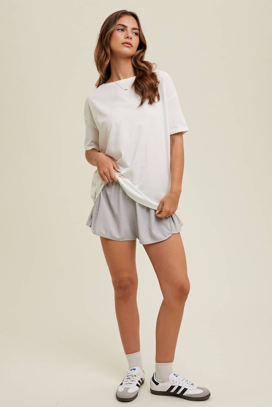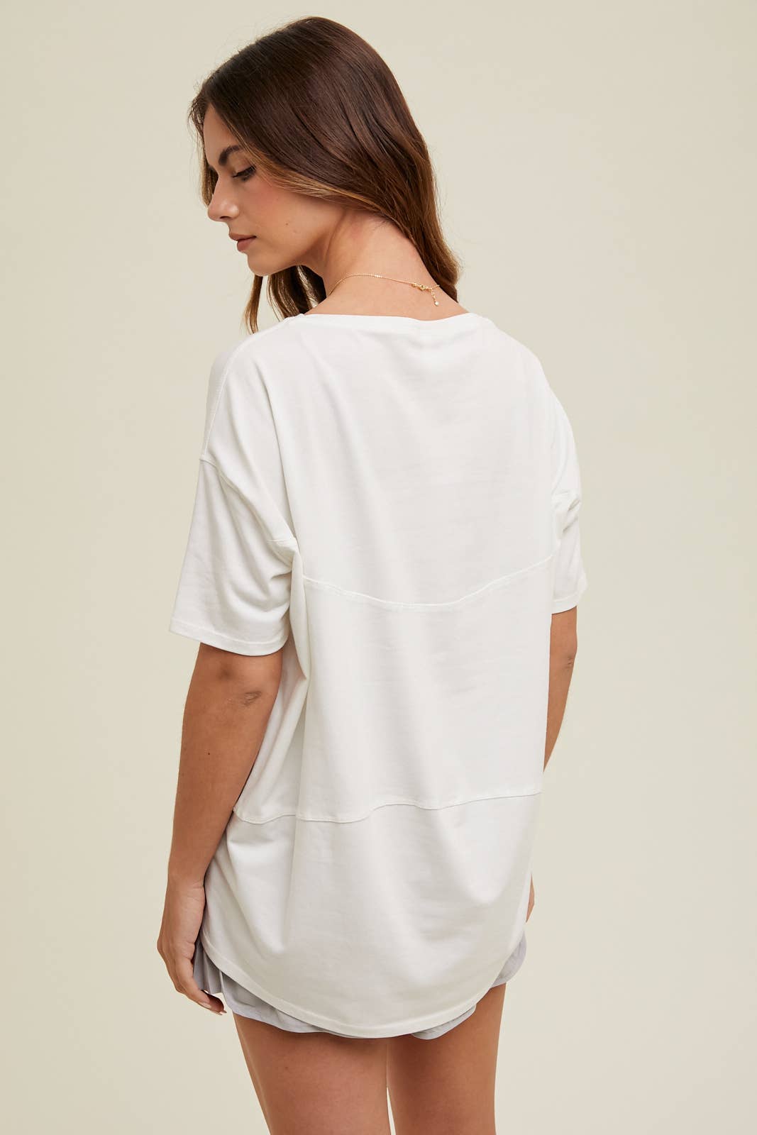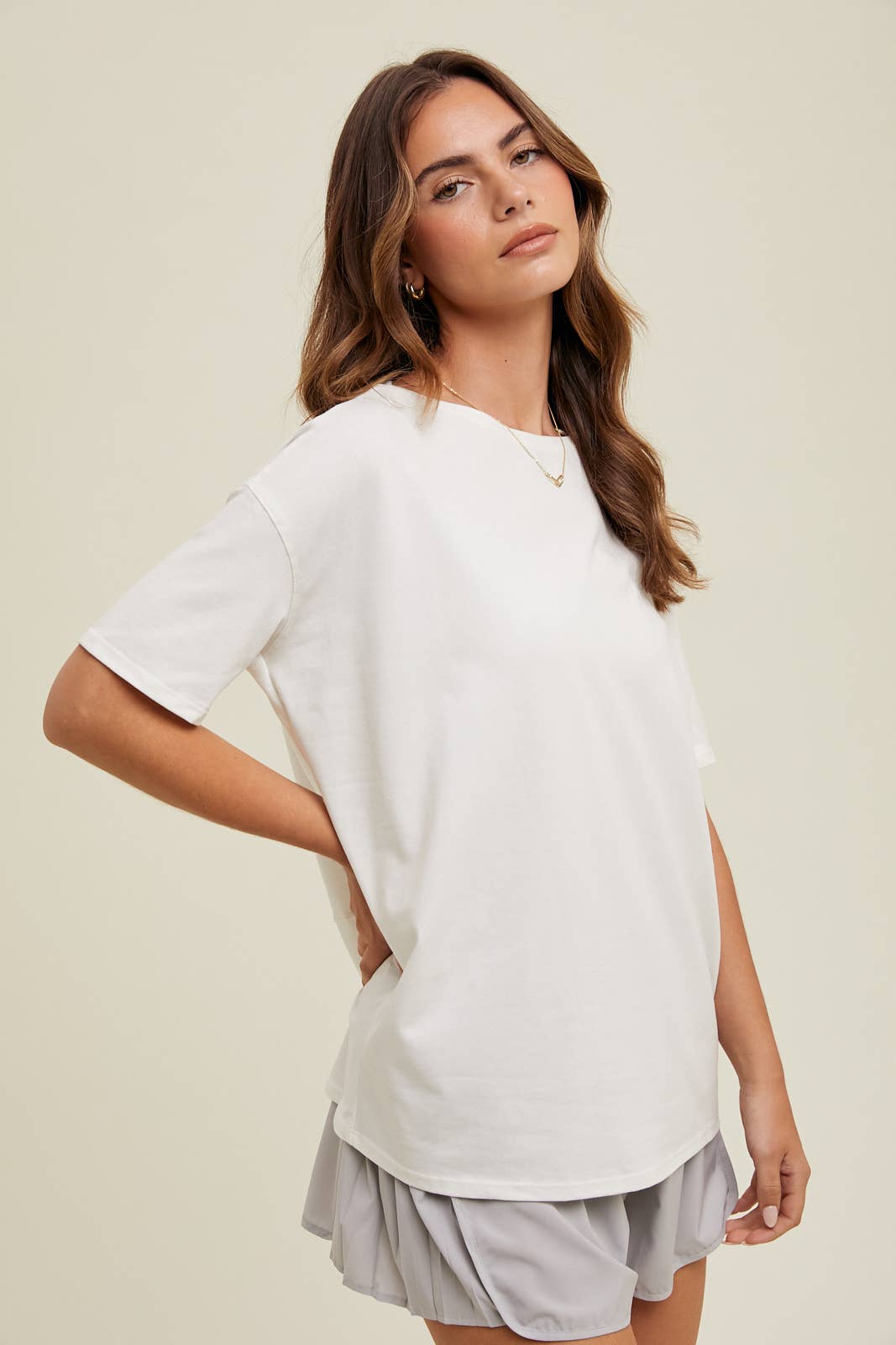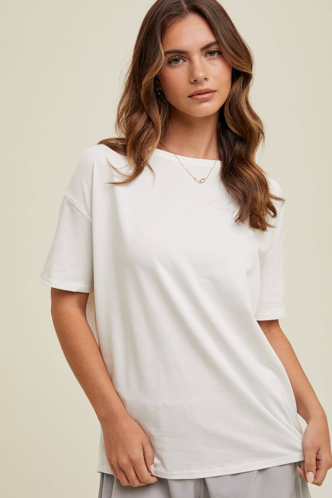 Get your cute and casual on with our Boatneck Casual Tee! In an off-white color, this stretchy tee is the perfect addition to your athleisure wardrobe. Don't sacrifice style for comfort - this tee has got you covered.