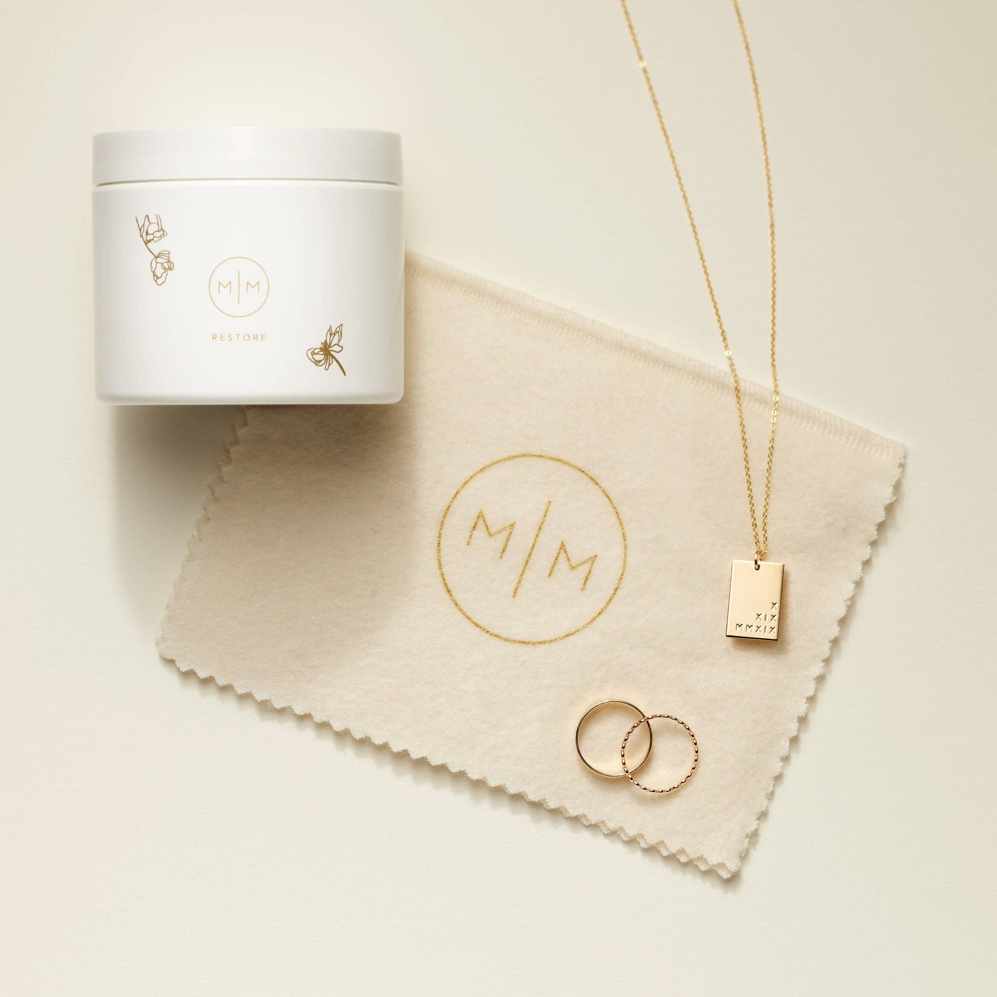 Designed to renew and refresh your jewelry, Restore Jewelry Cleaner is a gentle combination of liquid cleanser and a polishing cloth. This dynamic duo is safe for daily use on all of your favorite pieces, so you can bring back that “love at first sight” feeling and fall for your favorite Made By Mary pieces all over again. Restore the beauty and brilliance of your jewelry so your story can shine through.