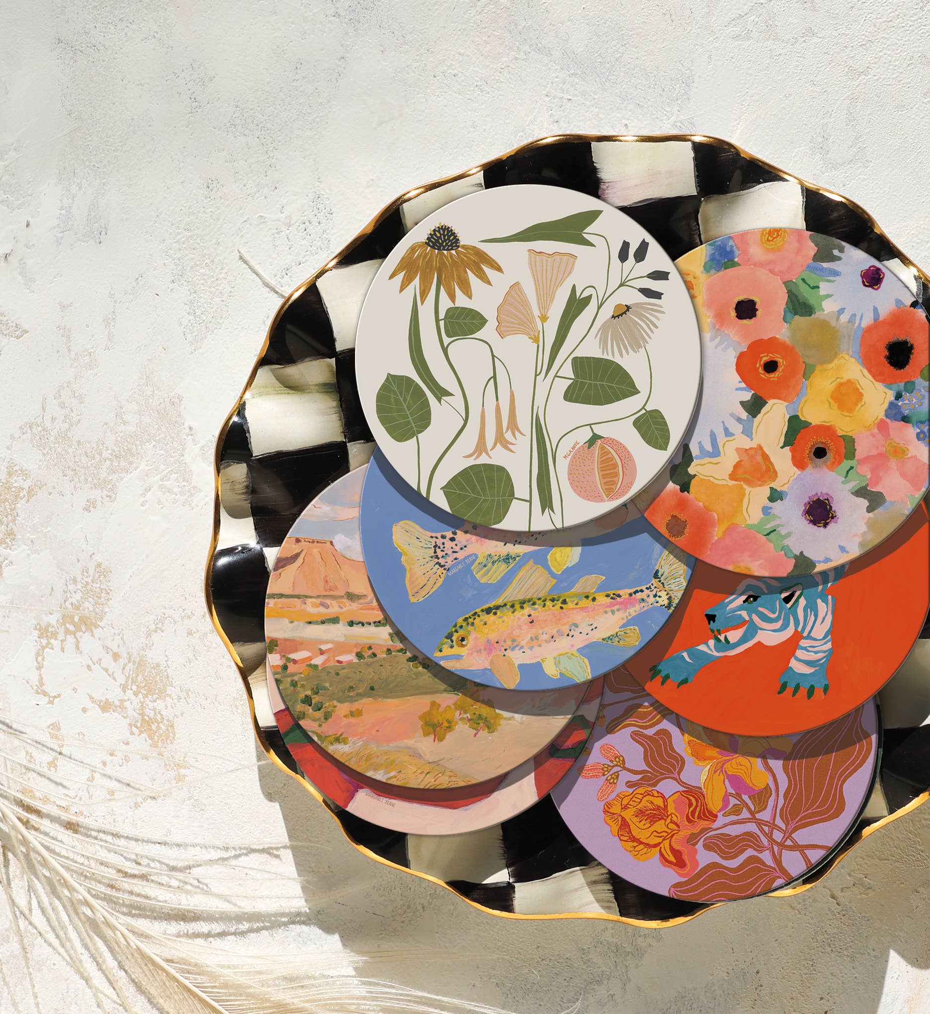 Our loose coasters feature hot foil stamped designs, which are corked-backed and heat + water resistant. Mix... match and curate a set for yourself and your BFFs. Your coffee table's new best friend and sure to elevate your dinner party's tablescape.