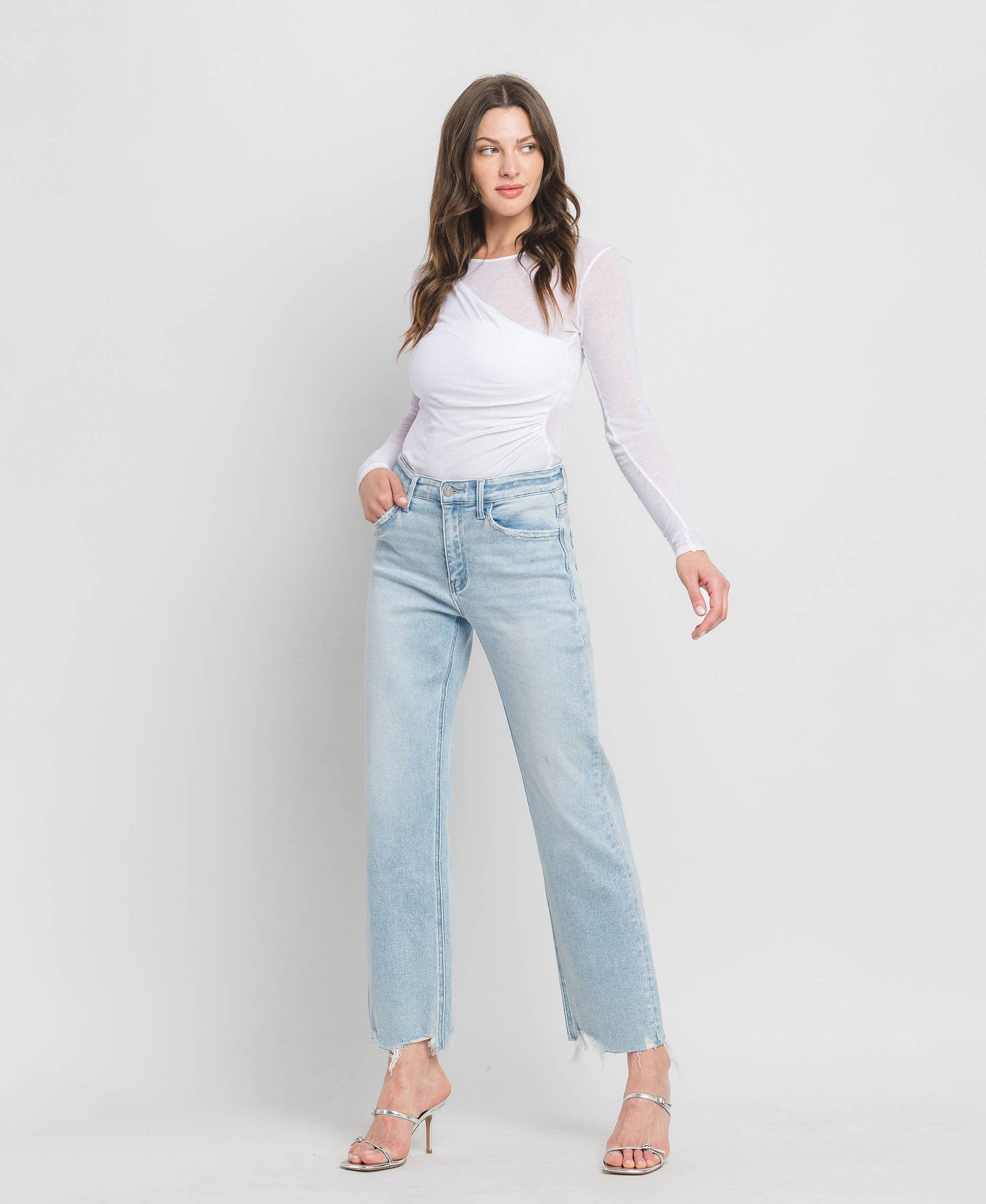 The Slim Wide Leg Jean in Lightwash offers a comfortable stretch fabric that moves with you throughout the day. Featuring a raw hem and a slim straight fit, these jeans combine modern style with a relaxed edge. The lightwash finish adds a fresh, versatile look perfect for any casual occasion.